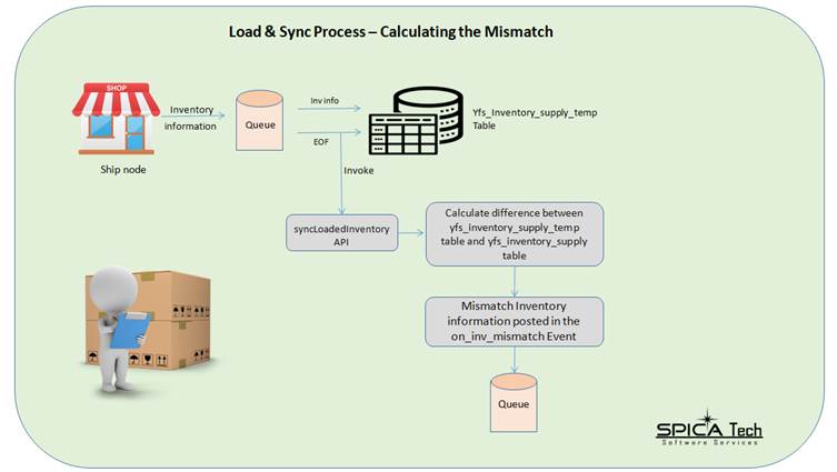 Async Service is created to receive all inventory details sent by Ship node through queue and those Inventory details get entered into YFS_INVENTORY_SUPPLY_TEMP  table by using loadInventoryMismatch API.