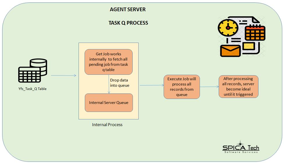 The Execute Job will process those list of records which dropped into the queue as per the business logic. This process will be repeated until no messages are fetched by getjobs. Interface to implement Non task q agent class : YFSBaseTaskAgent