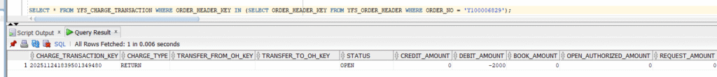 An entry is then created in the Return Order Charge Transaction table for the invoice amount, with the charge type set to RETURN.