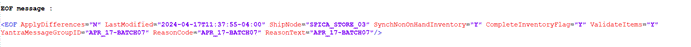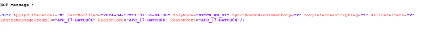 After dropping the EOF message into the Queue for the ship node, the inventory update will not be occur because the 2nd batch message had an exception in the OrganizationCode.