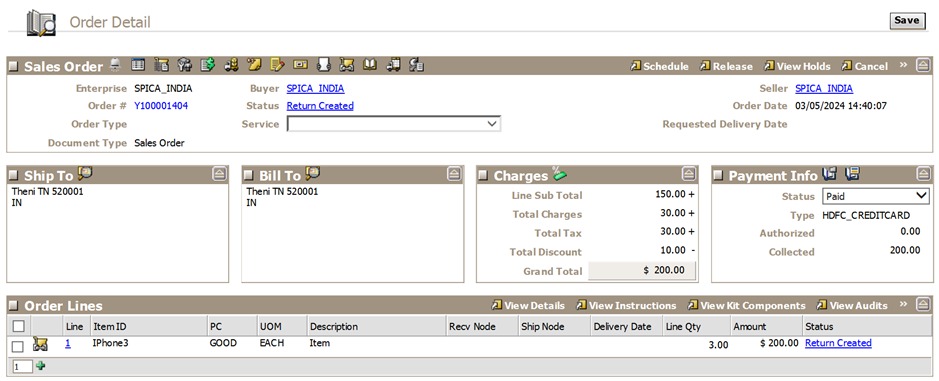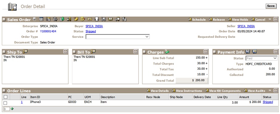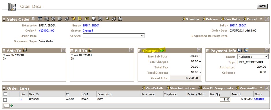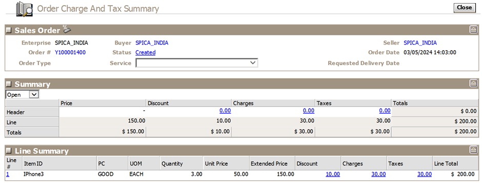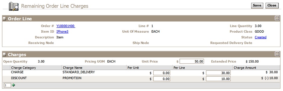 The charges and discounts (promotions) will be calculated based on the business requirement. The configured charges and taxes in financial attributes will be added either in header level or line level while creating an order.