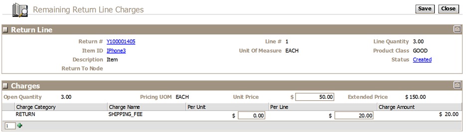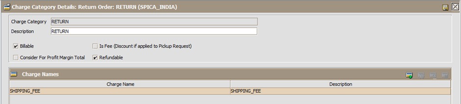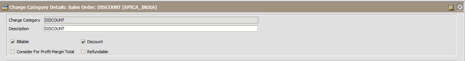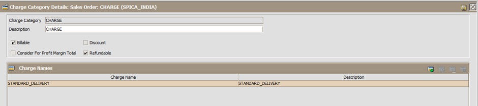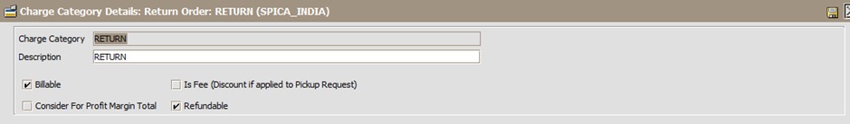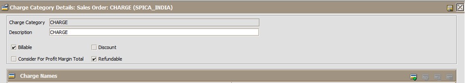| Refundable | If the charge is refundable when cancellation/ return is placed against the sales order. |