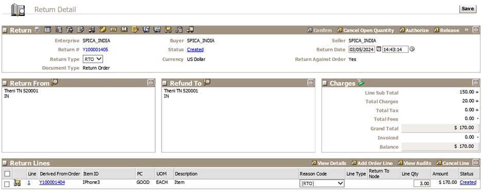 Reverse Logistics (RL) à Document Specific (Return Order) à Financials à Financial Attributes