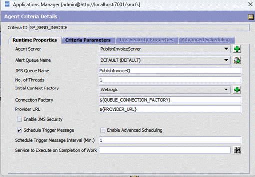 This transaction will collect all the records with a invoice created status(00), and it will publish those invoices to an external system. Create an agent server for Send Invoice to publish the created invoice to other system and change the invoice status to 01.