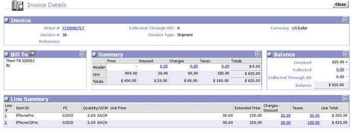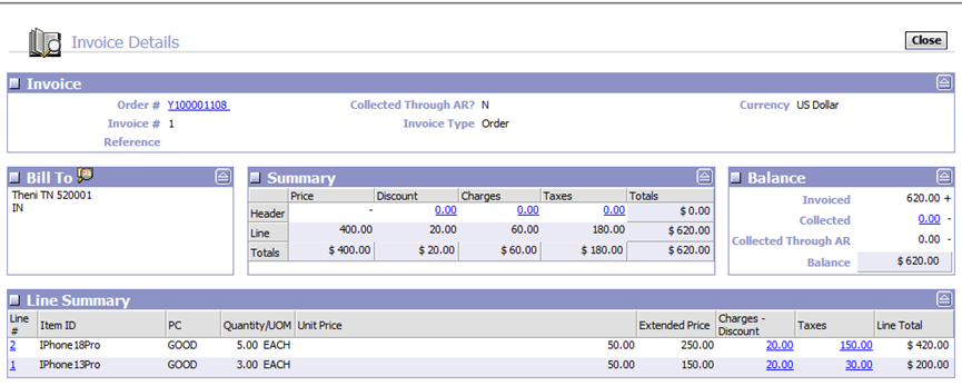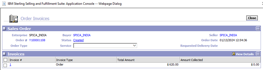 After Creating the Invoice, the ORDER_INVOICE charge type will opened in the YFS_CHARGE_TRANSACTION table