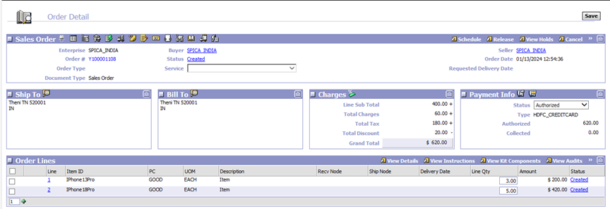After Creating the Invoice, the SHIPMENT charge type will opened in the YFS_CHARGE_TRANSACTION table